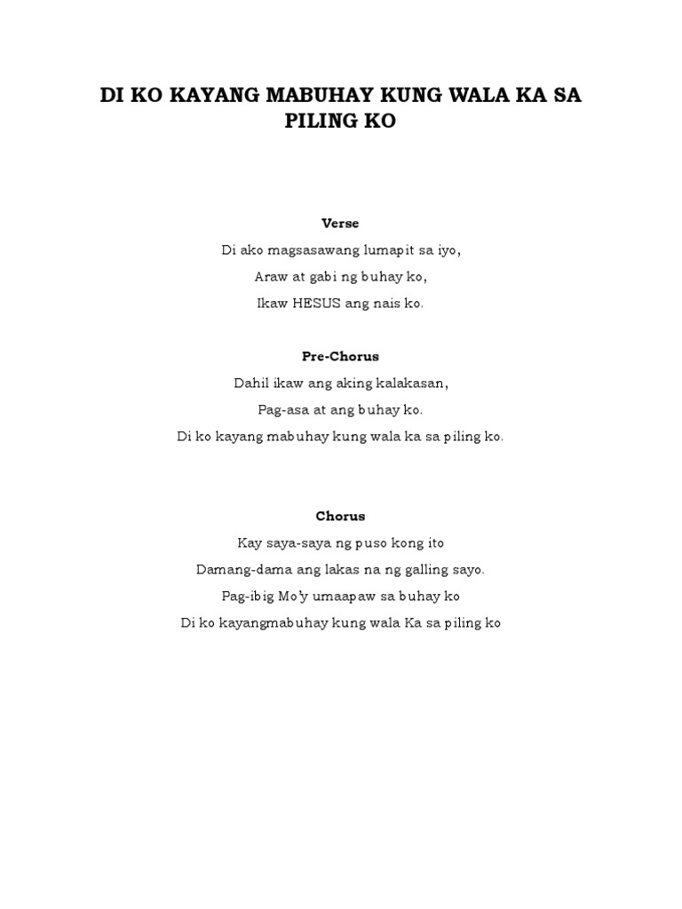 Di Ko Kayang Mabuhay Kung Wala Ka Sa Piling Ko Pdf