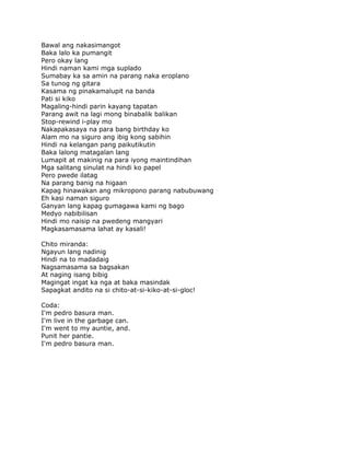 Hindi na kayang sumabay. Hindi na kayang hulugan kasi kapos na sa gastusin. Angel hindi na kayang rumaket nang sabay-sabay. Kayang makipagbardagulan hanggang sa mapagod at matatawa na lang tayong dalawa.